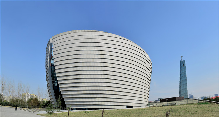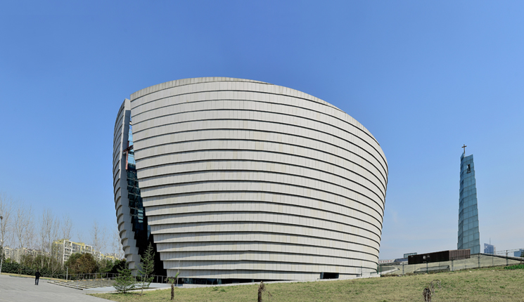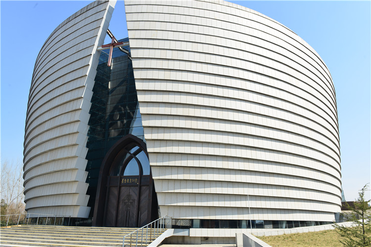 位于南京河西金陵圖書館北部,建筑面積1.3萬平方米,其中主堂建筑面積7063平方米。鋼結(jié)構(gòu)外圍護(hù)采用了旭建公司的125mm花紋板,6000平方的外立面呈倒錐體弧形造型,ALC板材的天然質(zhì)感與教堂的古樸氣質(zhì)渾為一體,莊嚴(yán)、神圣。圣訓(xùn)堂作為國(guó)際化大教堂成為國(guó)內(nèi)外基督徒宗教聚會(huì)、開展教職、人員培訓(xùn)和文化交流的重要場(chǎng)所,匹配了南京作為國(guó)際化大都市的宗教功能。